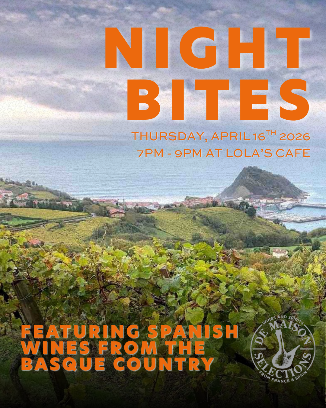 Night Bites was designed to highlight the incredible food and drinks that we have, offering a fun and relaxed setting for tasting and learning. It's an exclusive, after-hours event where guests can enjoy a unique experience of tasting at Lola's and private shopping in White Horse. Each Night Bites event is different, featuring a one-of-a-kind selection of food and drinks.